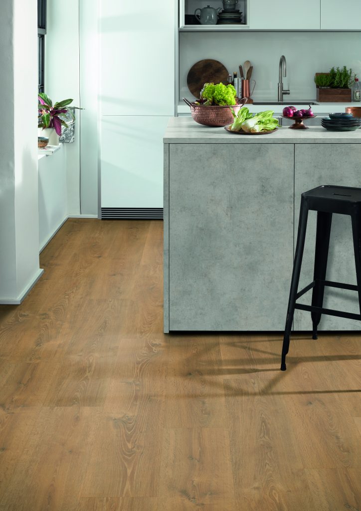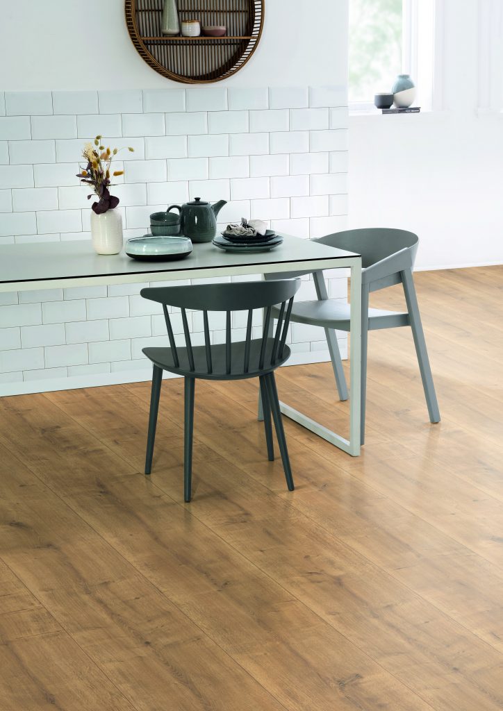 10. Resistencia: Los suelos de madera con acabados con alta resistencia a arañazos, ideales para hogares activos con niños y mascotas, también estarán en auge. Para áreas con tráfico intenso, funcionan especialmente bien los sistemas multicapa y los vinílicos rígidos. En exteriores, los composites aseguran estabilidad y resistencia a la intemperie. En interiores más tranquilos, las soluciones naturales aportan un valor estético y sensorial que no pasa desapercibido. La nueva gama AquaDura+ de Egger Pro, que distribuye Gabarró, es ideal para uso en espacios húmedos como cocinas y baños y ofrece la máxima resistencia dentro del sector de los suelos de madera. Diseñada para proyectos exigentes, ofrece una resistencia al agua de hasta 72 horas y una fórmula especial en su núcleo HDF que minimiza el hinchamiento. Es ideal tanto para espacios residenciales, como comerciales y del sector hostelero.